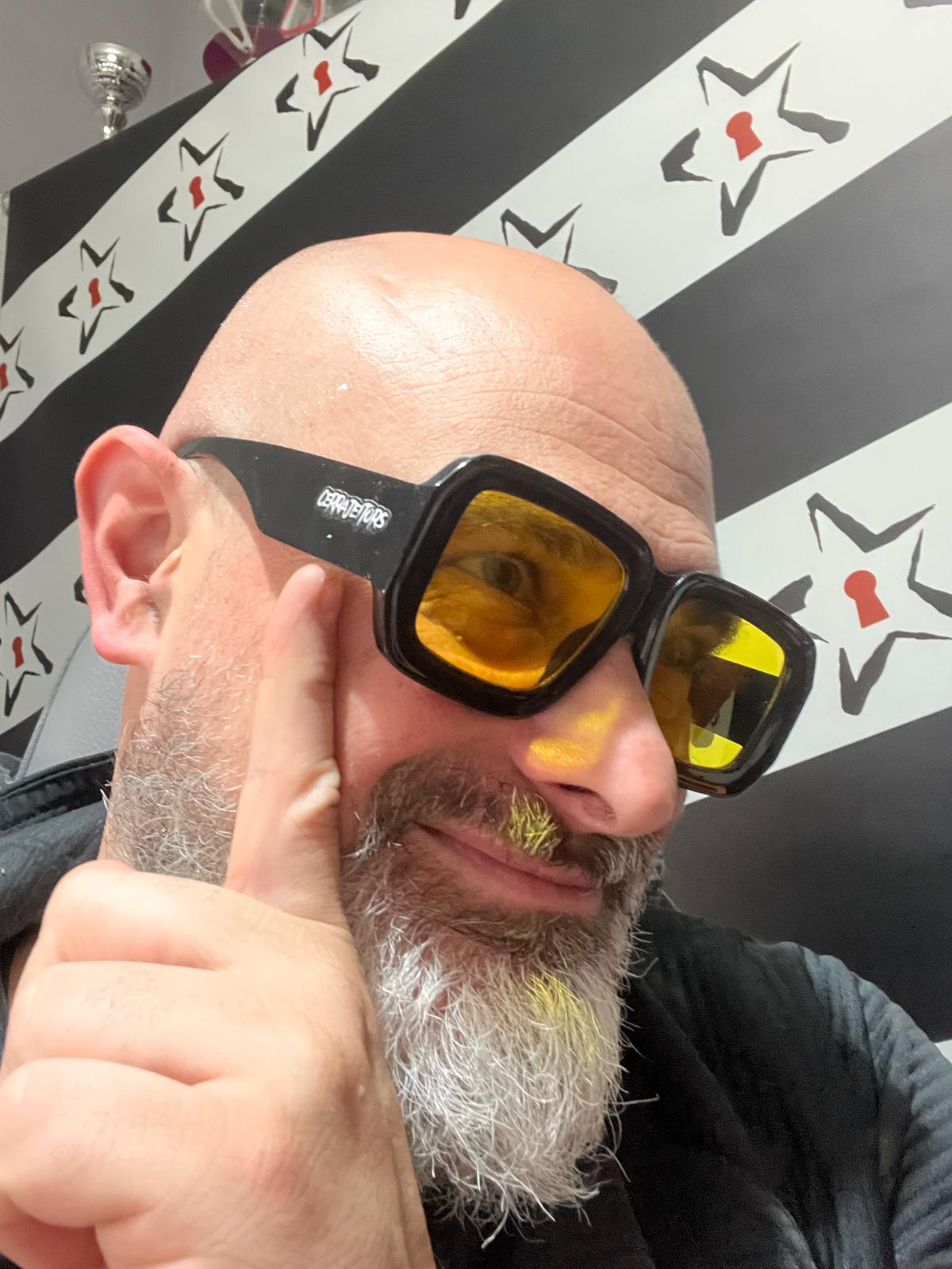 gafas de pasta negra y cristales amarillos molones