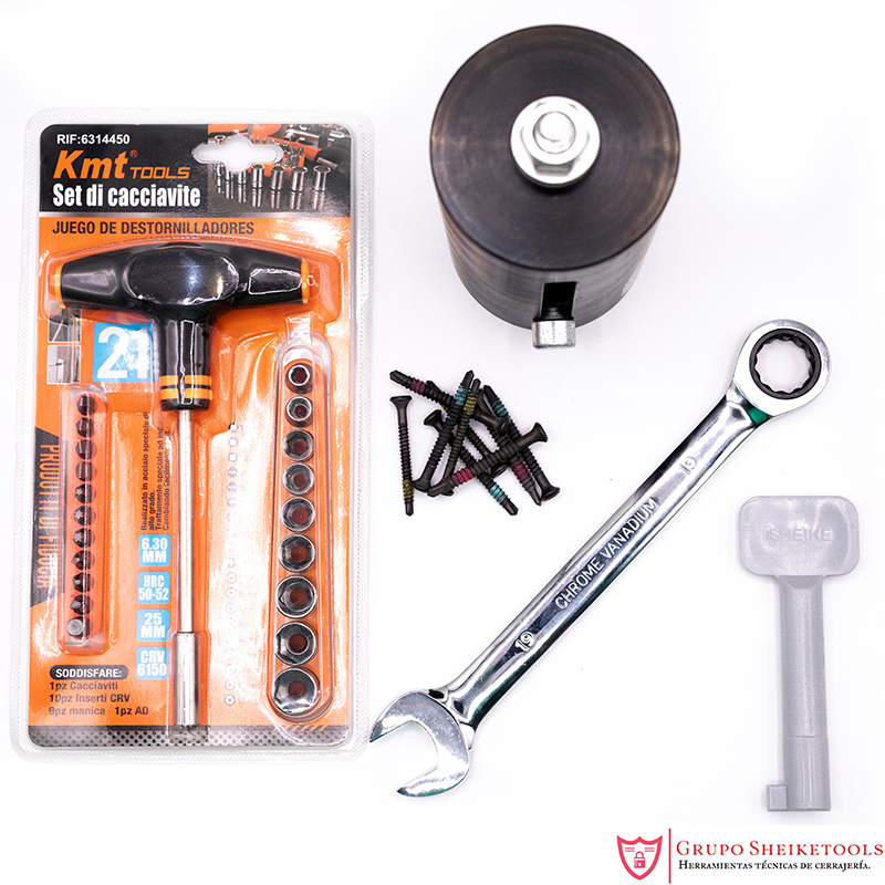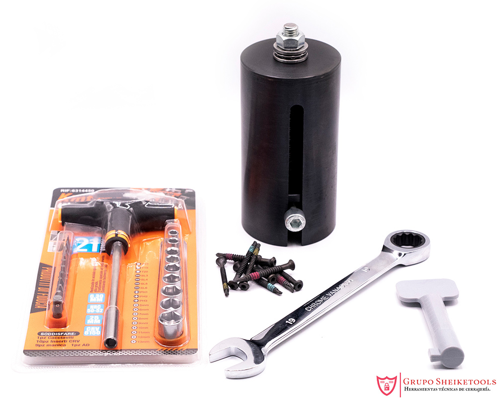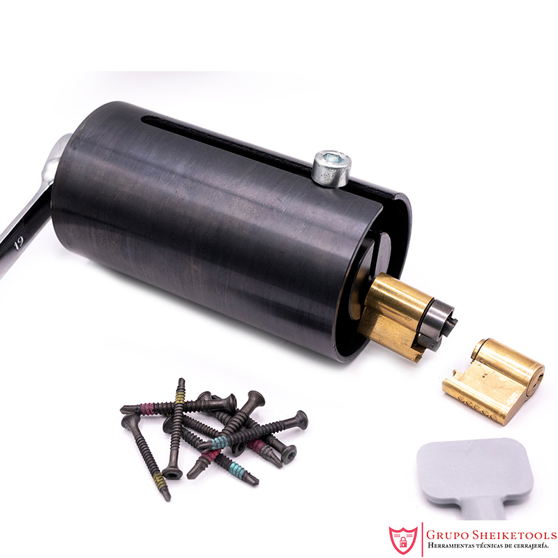 El cabezal del extractor tiene la capacidad de enganchar dos tornillos. Valido para bombines de pera o redondos.