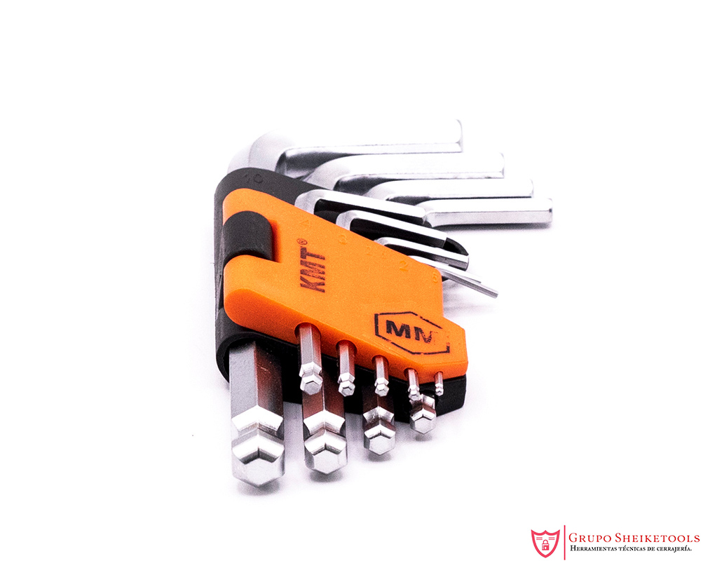 El brazo corto acabado en punta allen y el brazo largo acabado en bola. Las llaves están endurecidas por tratamiento térmico con acabado cromado. Capacidad de apriete y protección contra la oxidación.