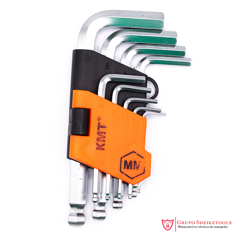 Juego de 9 allen de acero, útiles para tornillos con cabeza hexagonal hueca.